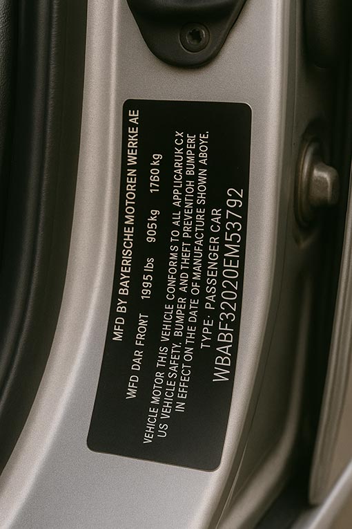 Your BMW E36 VIN can be found in several spots — on the door frame, windshield, and under the hood. Always check that all VINs match your car’s documents. If you want full details about your E36’s history, use a VIN decoder to see its build data, specs, and past records.