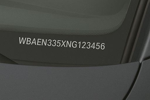Stand outside the car and look at the lower left corner of the windshield, near the dashboard. You’ll see a small metal plate or etched area showing the BMW E46 VIN through the glass. This spot allows quick verification without opening the doors or hood. It’s the easiest way for authorities or buyers to confirm the car’s identity.